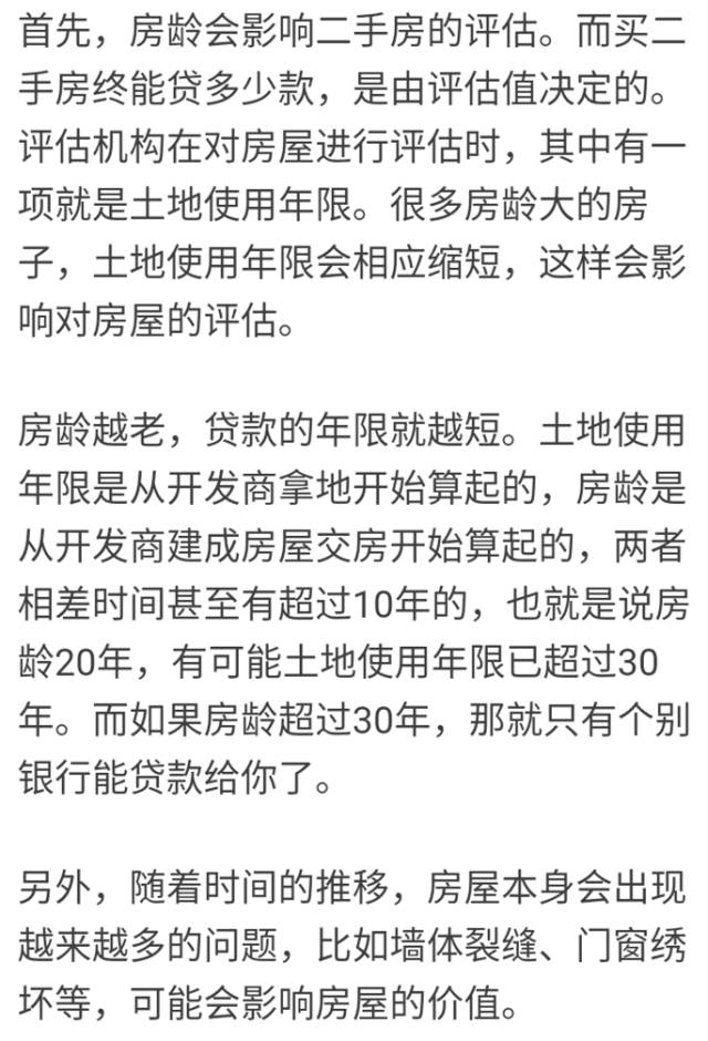 买二手房时,很多人只注意到户型、地段等,却忽视了房龄这个重要因素。其实,如果二手房的房龄太老,会对办理手续贷款、房屋保值、农地使用年限等方面都产生影响。